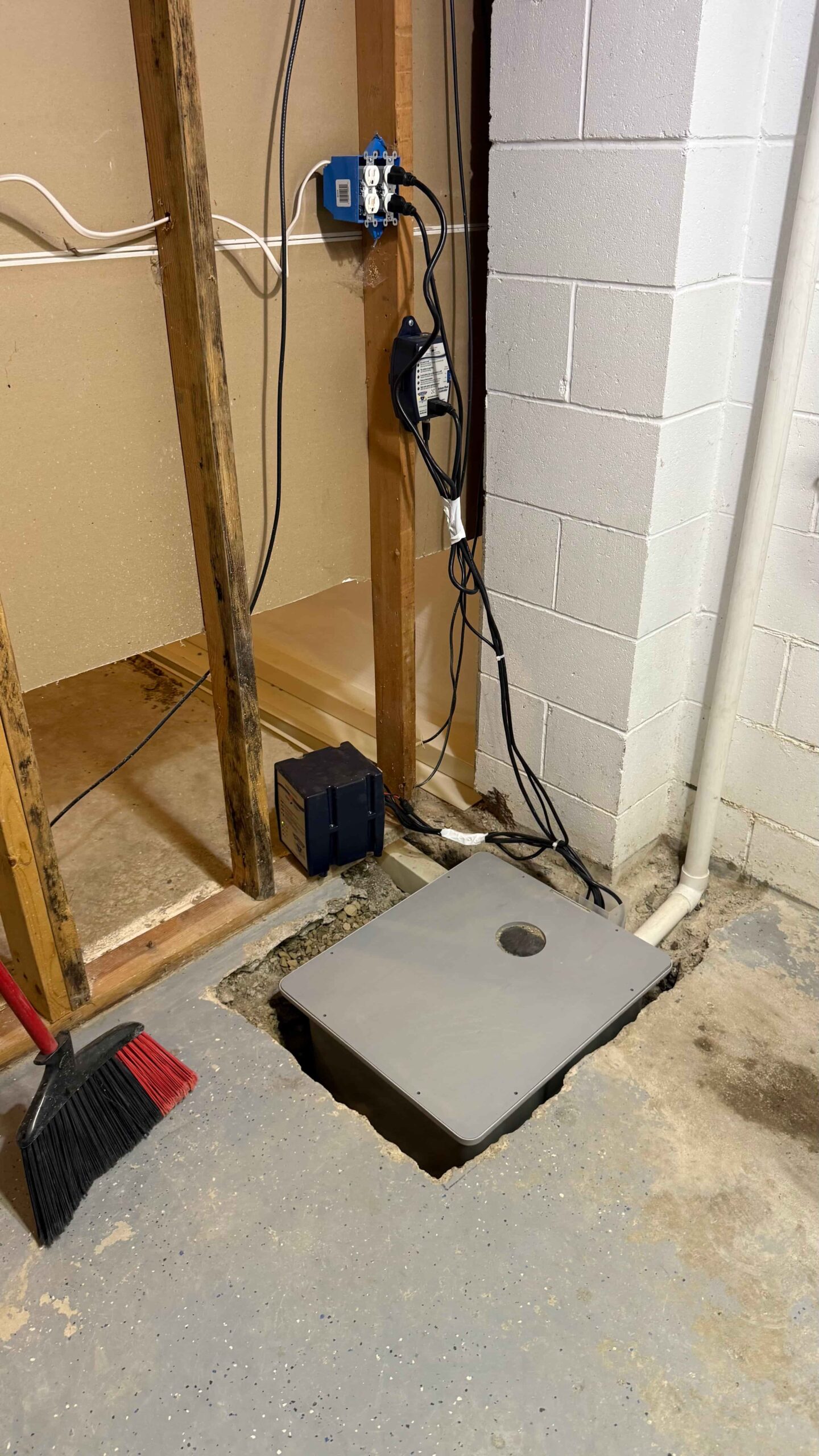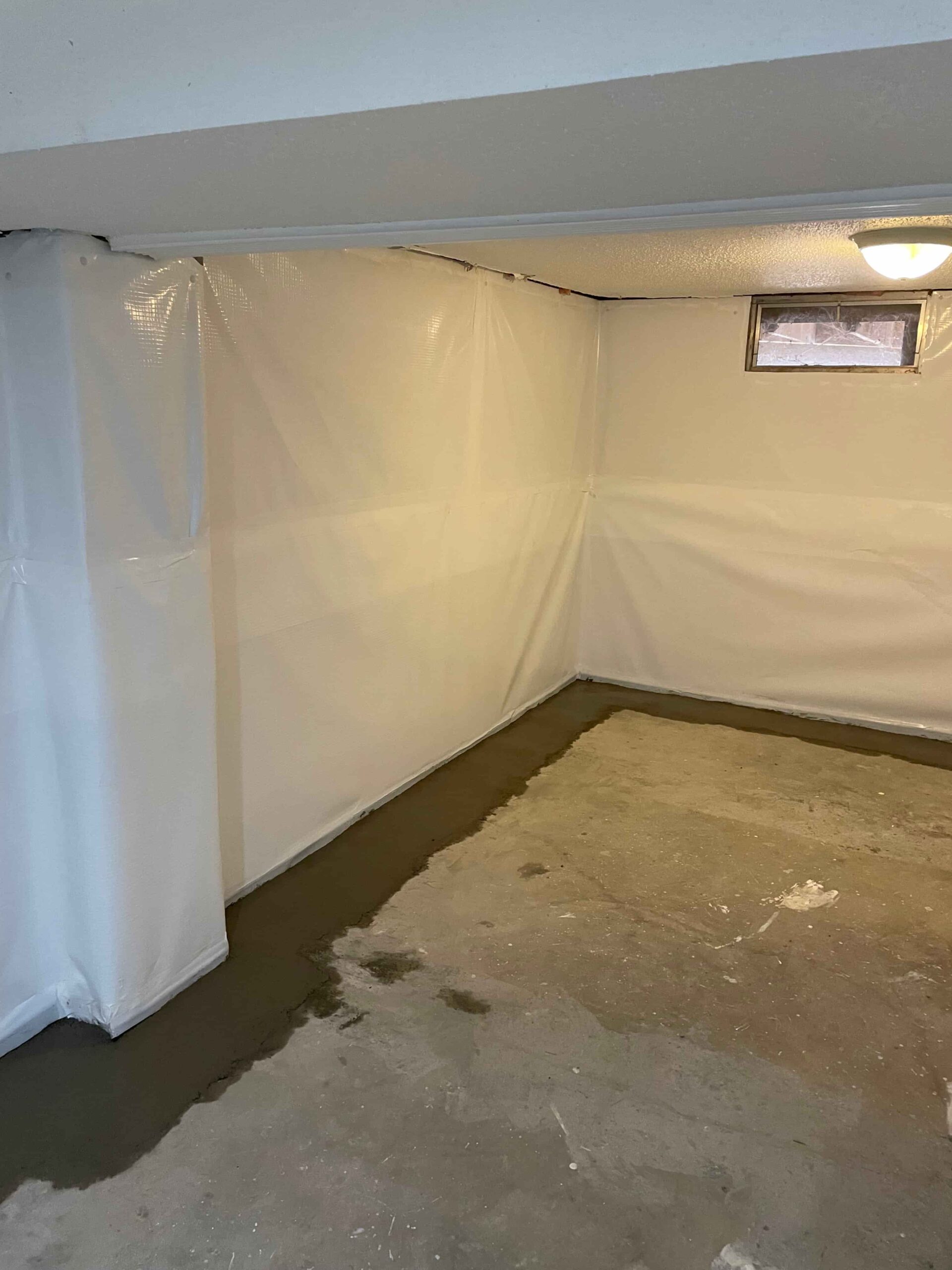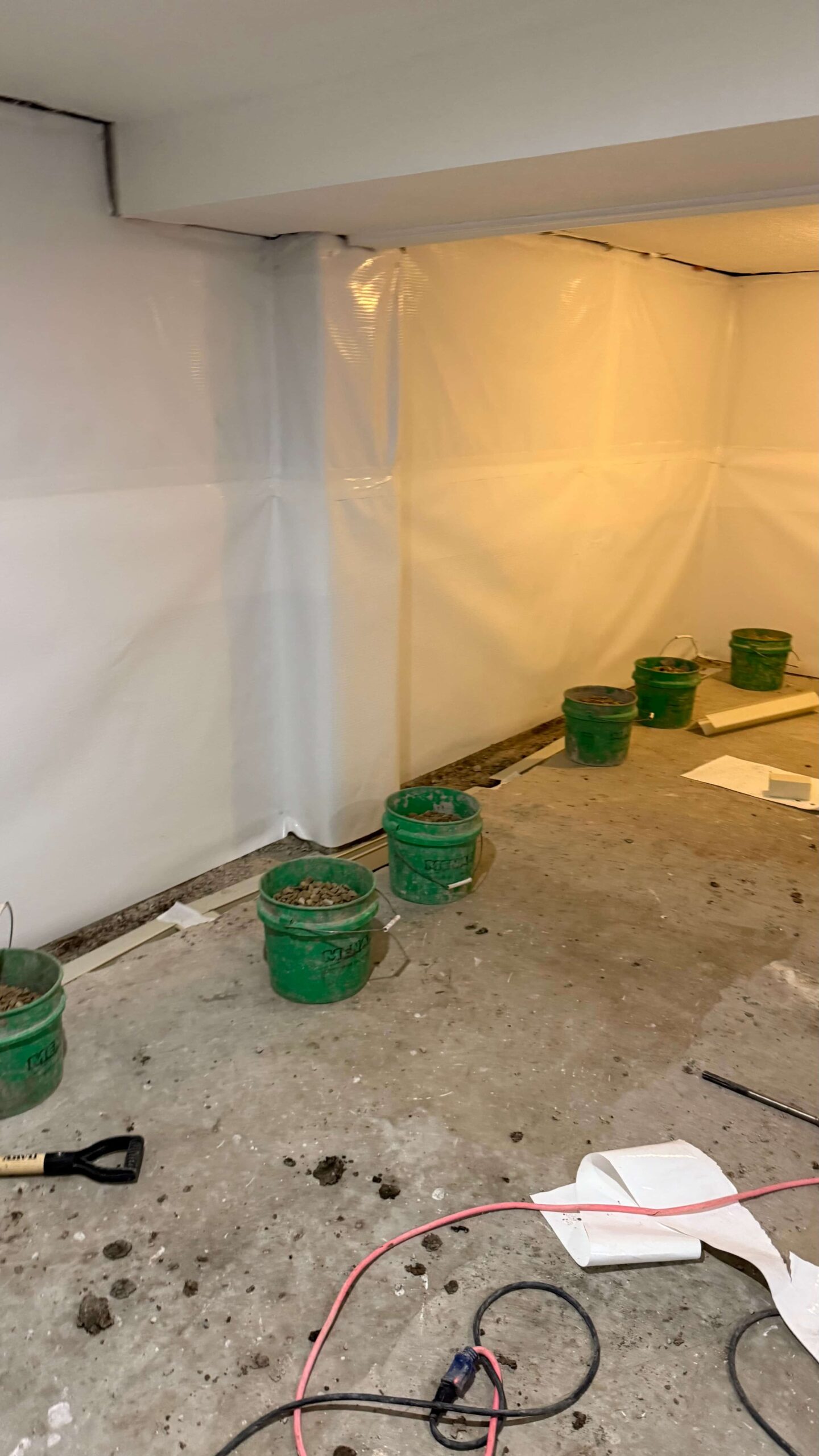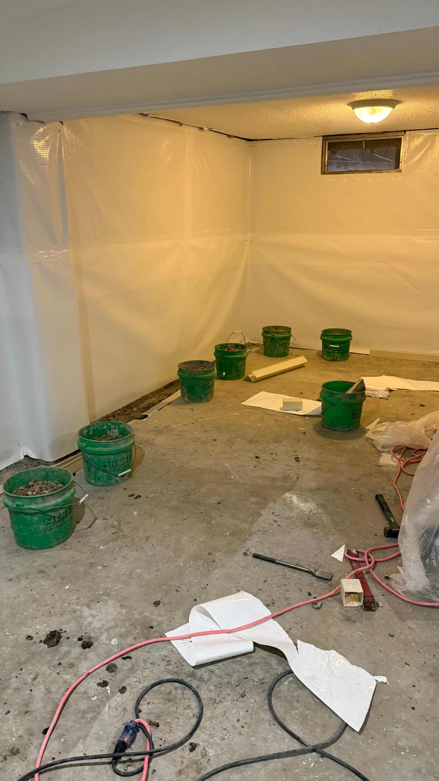 To eliminate the root cause—water—we sealed existing cracks with high-grade polyurethane injections, creating a waterproof barrier. Then we installed our NoWater System.